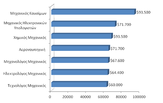 Ενδεικτικό της αυξανόμενης ζήτησης αποφοίτων από τον κλάδο του engineering είναι και το γεγονός ότι οι ειδικότητες του engineering συγκαταλέγονται μεταξύ των πιο ακριβοπληρωμένων παγκοσμίως. Σύμφωνα με έρευνα του National Association of Colleges and Employers (Απρίλιος 2013), εφτά στις δέκα ειδικότητες με το μεγαλύτερο αρχικό μισθό αφορούν στο engineering. Από τις επιμέρους ειδικότητες του engineering, οι ηλεκτρολόγοι μηχανικοί, και ιδιαίτερα όσοι κατέχουν μεταπτυχιακό ή υψηλότερη ειδίκευση, σημειώνουν τη μεγαλύτερη ζήτηση. Χαρακτηριστικό είναι πως ο αρχικός μισθός για τη συγκεκριμένη ειδικότητα ανέρχεται σε $64.400 ανά έτος. Μικρότερη ζήτηση, αλλά πιο καλοπληρωμένη μεταξύ των επιμέρους ειδικοτήτων του κλάδου, έχει η ειδικότητα των μηχανικών καυσίμων. Ο αρχικός μισθός είναι $93.000, δηλαδή τουλάχιστον $20.000 περισσότερα από τον μέσο μισθό των μηχανικών ηλεκτρονικών υπολογιστών, που αποτελούν τη δεύτερη πιο ακριβοπληρωμένη κατηγορία μηχανικών. Άλλες καλοπληρωμένες ειδικότητες είναι εκείνες των χημικών μηχανικών, της αεροναυπηγικής, των μηχανολόγων μηχανικών και των τεχνολόγων μηχανικών (Διάγραμμα 2).
