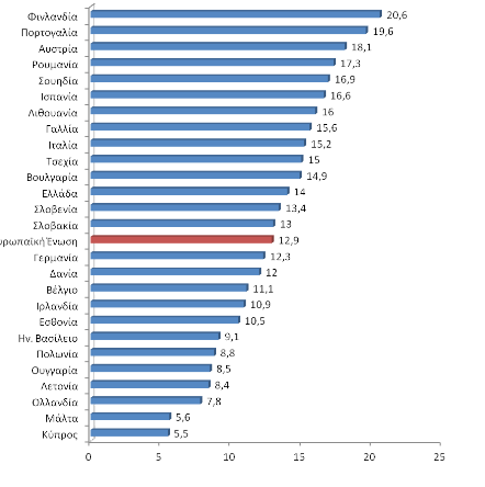 Πηγή: Eurostat, Key Data on Education in Europe (2012).