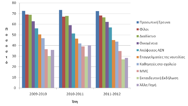 Διάγραμμα 1. Πηγές πληροφόρησης των νέων για τις Ακαδημίες Εμπορικού Ναυτικού (ΑΕΝ)