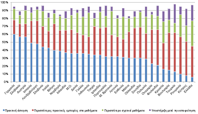 Τέλος, ένα ποσοστό της τάξης του 20% (που αποτελεί από τα υψηλότερα μεταξύ των χωρών που συμμετέχουν στην έρευνα) θεωρεί πως θα πρέπει να δοθεί μεγαλύτερη σημασία στην υποστήριξη των πτυχιούχων μετά την ολοκλήρωση των σπουδών τους.