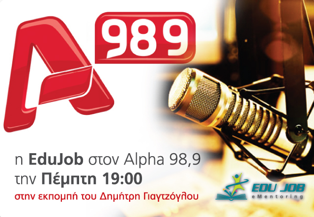 Την Πέμπτη 5/12 στις 19.00 στην εκπομπή του Δημήτρη Γιαγτζόγλου "Ζούμε αληθινά"  η ψυχολόγος-σύμβουλος σταδιοδρομίας της Edujob Νίκη Μπίγγου θα μιλήσει για το εργασιακό άγχος και για το άγχος που βιώνουν οι άνεργοι και θα δώσει πρακτικούς τρόπους διαχείρισής του.