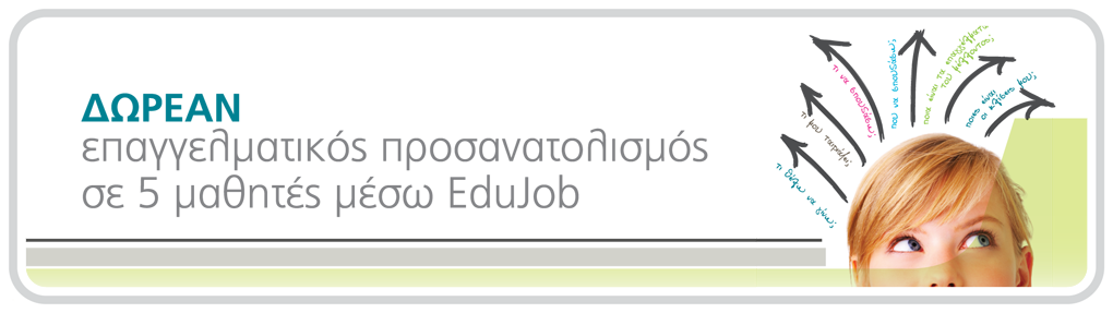 Η ΕduJob , διαδικτυακή πλατφόρμα e-mentoring που εστιάζει στην παροχή υπηρεσιών επαγγελματικού προσανατολισμού και συμβουλευτικής σταδιοδρομίας σε μαθητές, φοιτητές και ενήλικες, προσφέρει δωρεάν σε πέντε αναγνώστες του in.gr που θα δηλώσουν συμμετοχή την υπηρεσία επαγγελματικού προσανατολισμού μέσω διαδικτύου για μαθητές .