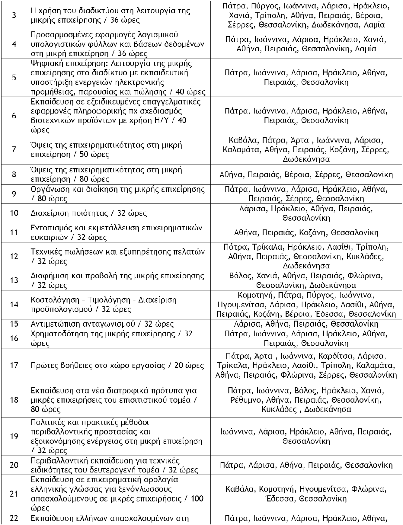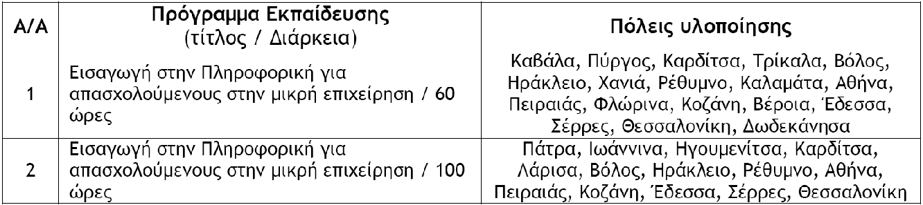 Τα προγράμματα εκπαίδευσης είναι τα ακόλουθα: