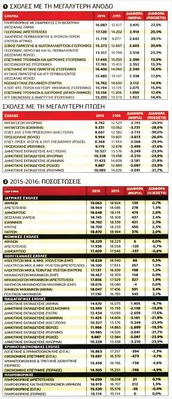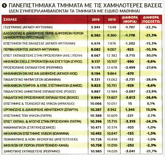 • Οι σχολές με τη μεγαλύτερη πτώση είναι μόνον παιδαγωγικές.