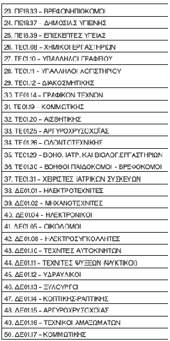 Σύμφωνα με τον ΦΕΚ του νόμου 4172/2013, άρθρο 82 καταργούνται οι ακόλουθες ειδικότητες ΤΕΕ.