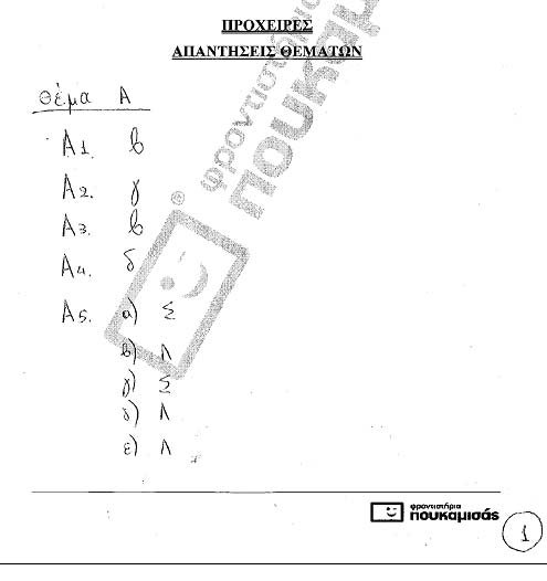 Οι προτεινόμενες απαντήσεις όπως τις έδωσε το φροντιστήρια Πουκαμισάς.